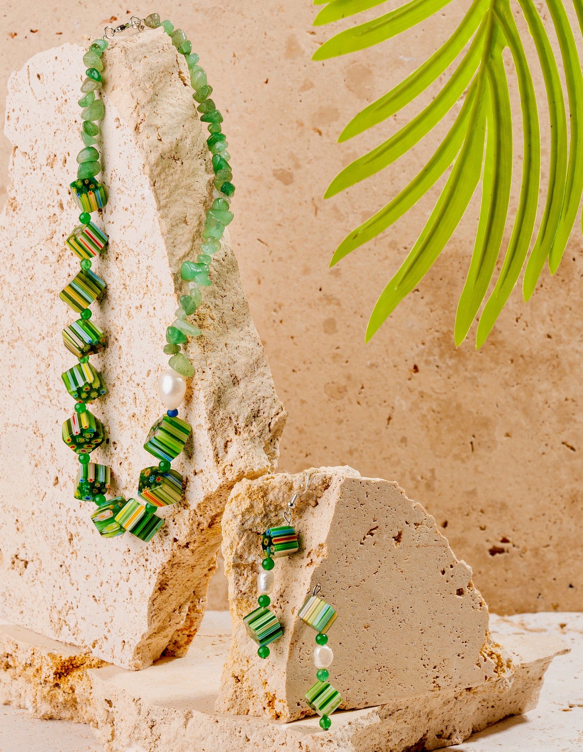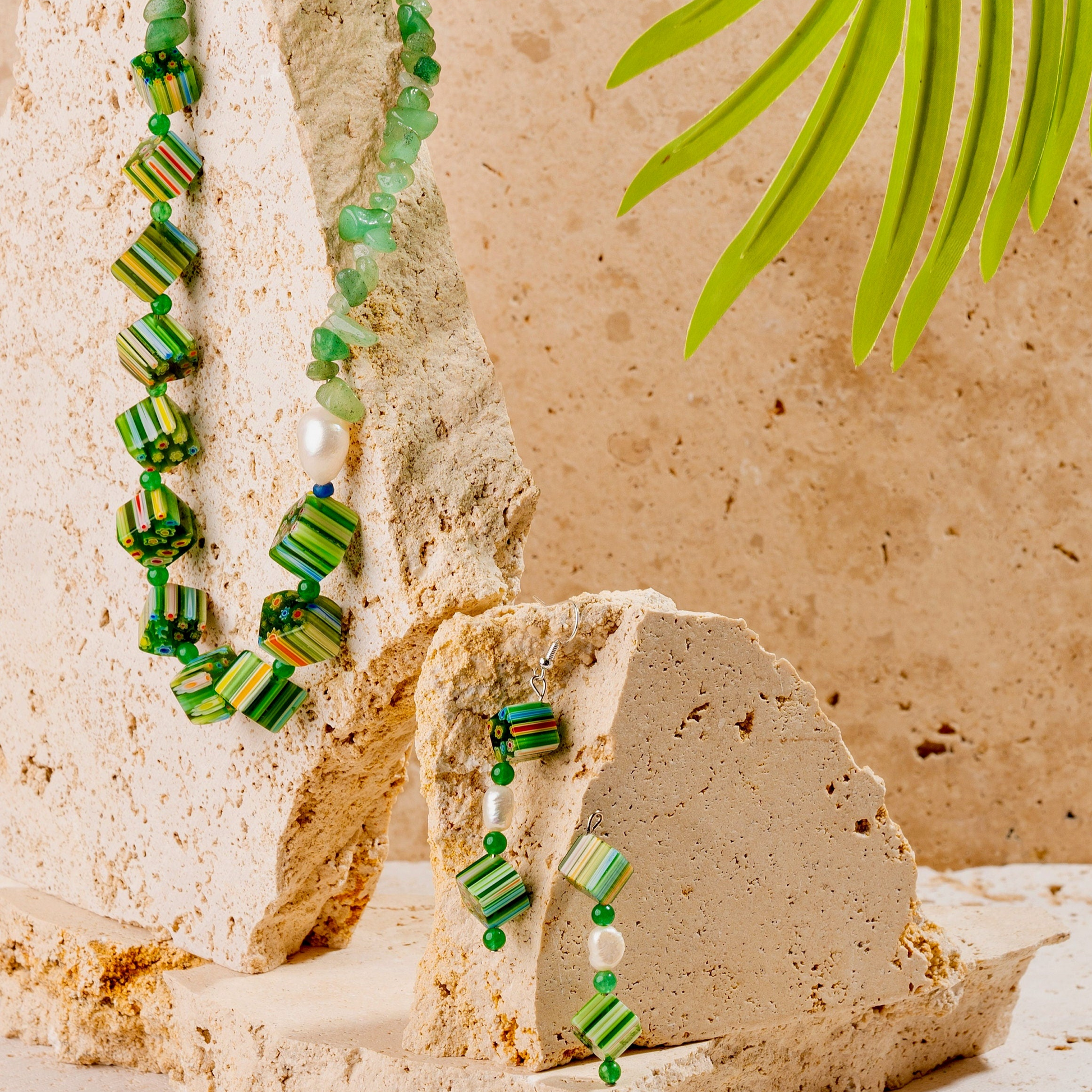 Millefiori Italian Glass Beads + Aventurine + Pearl Jewellery