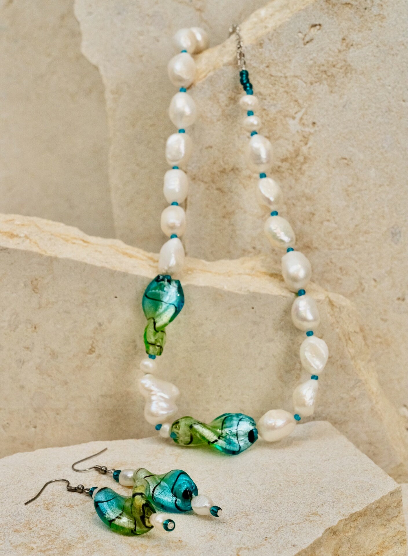 Freshwater Pearls & Twisted Glass Foil Bead Jewellery Set
