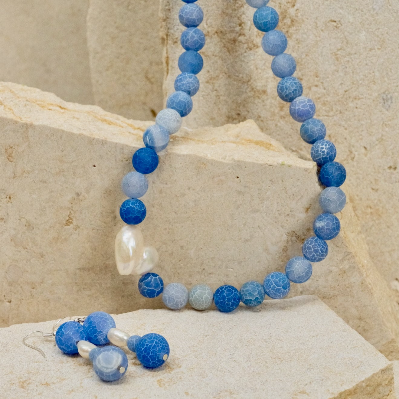 Frosted Agate with Baroque Pearl Beaded Jewellery Set, Gemstone Jewellery Bundle, Coordinated Beadwork Accessory